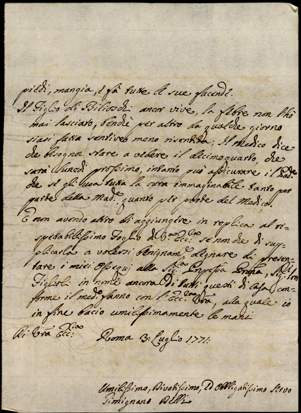 3. Lettere ricevute in Urbino dal Signor Principe Orazio Albani ultimo di questo nome nell'anno 1771
