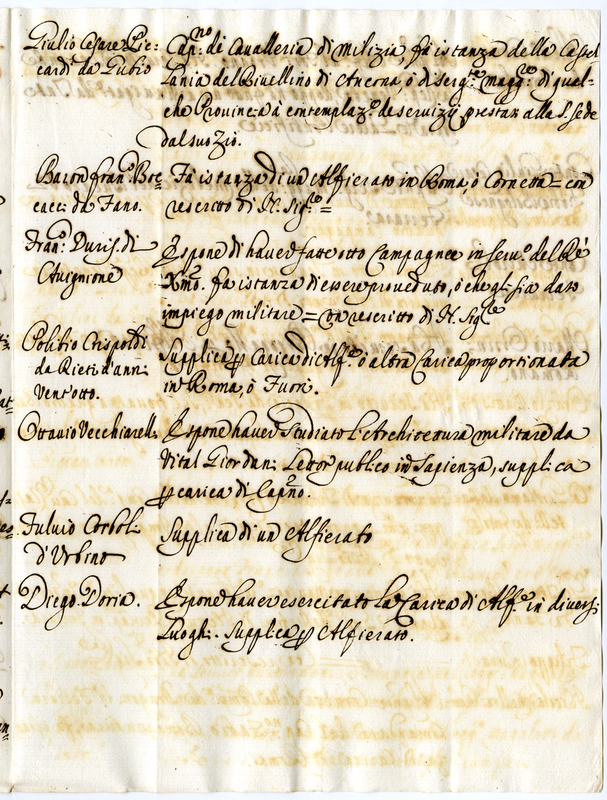Elenco di nominativi con breve biografia e loro incarico (1700-1721)