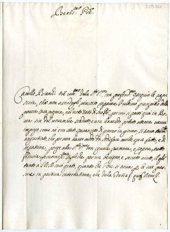 Lettera di Camillo Bianchi a Clemente XI (1700-1721)