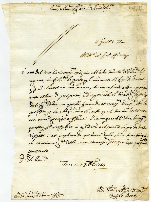 Lettera di Maffeo Bonti al cardinale Annibale Albani (1714 dicembre 24)