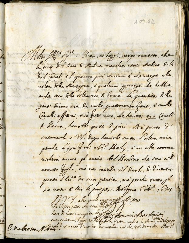 Lettera del cardinale Barberini Antonio senior a Malatesta Albani (1643 ottobre 6)