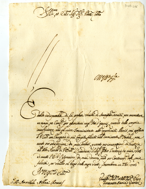Lettera di Francesco Maria Cesarini ad Annibale Albani (1706 dicembre 12)