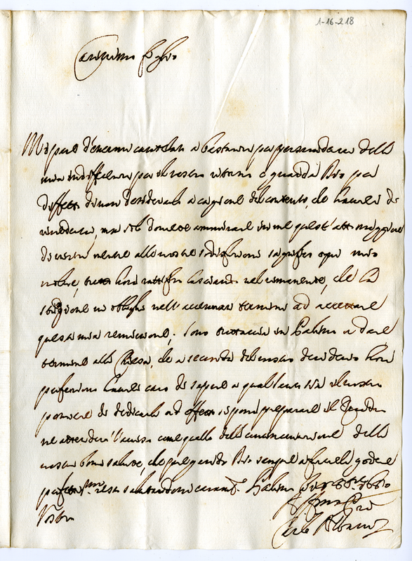 Lettera di Carlo Albani a Giovanni Francesco Albani (1680 ottobre 18)