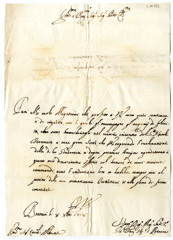 Lettera del vescovo di Brescia al cardinale Annibale Albani (1718 dicembre 8)