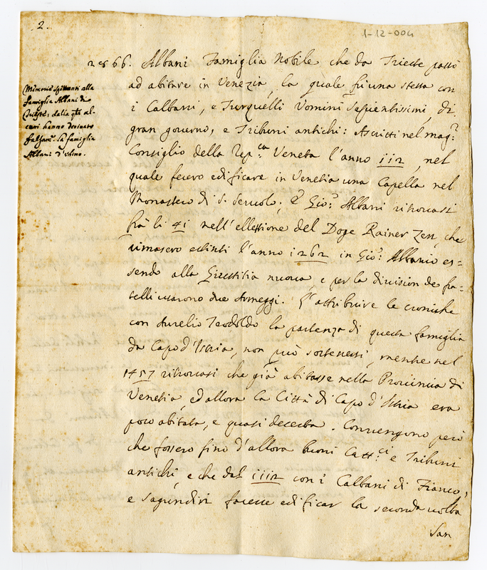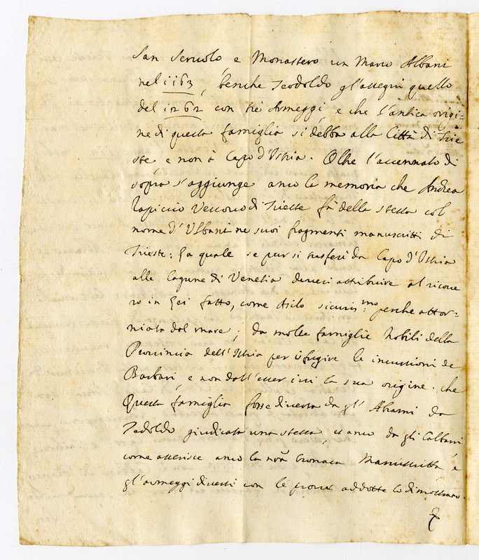 Attestazione della presenza di una famiglia Albani che da Trieste si trasferì a Venezia