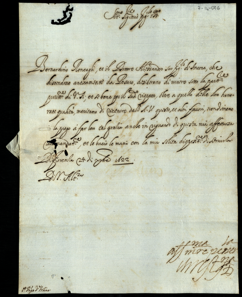 Lettere, memoriali al Serenissimo Principe d'Urbino appartenenti alla carica di segretario di Giustizia