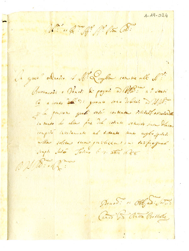 Lettera del canonico Giovanni Battista Borrello all'abate Baglioni (1688 dicembre 7)