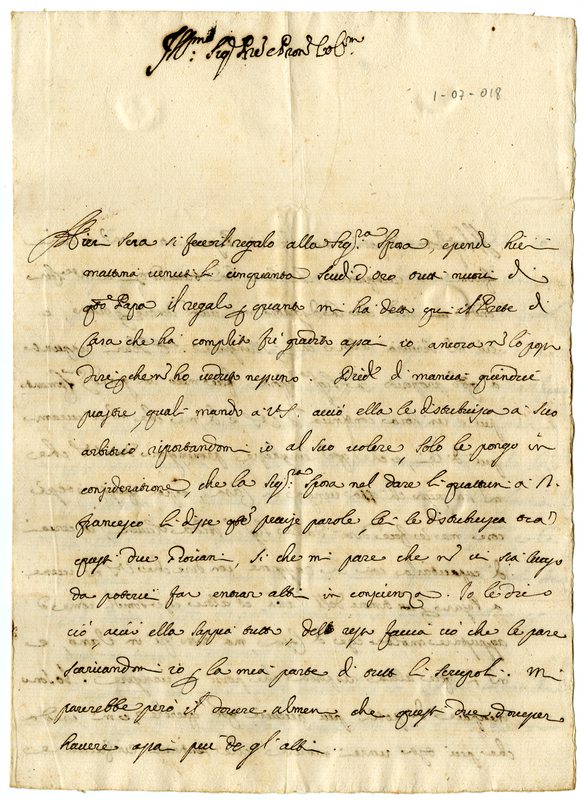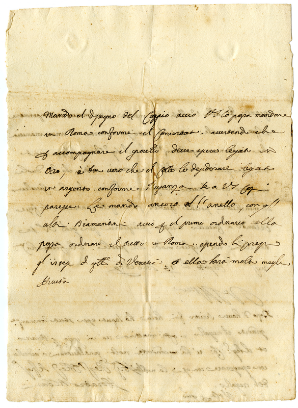 Orazio comunica che è stato fatto con soddisfazione di tutti il regalo alla sposa. Fa sapere inoltre lamentele della sposa e di molti altri per i ritardi nella conclusione della questione della rinuncia all'eredità. Gli manda anche il disegno del gioiello