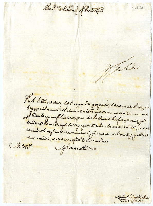 Lettera di Taddeo Collicoli ad Annibale Albani (1718 dicembre 20)