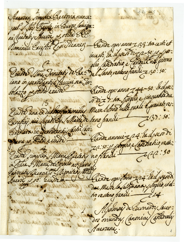 Rendite di alcune chiese nel Regno di Napoli (1700-1721)