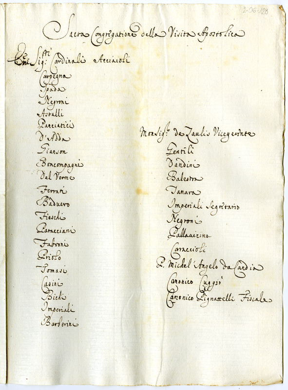Organigramma della Sacra Congregazione della Visita Apostolica (1700-1721)