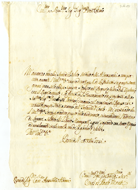 Lettera degli eredi di Paolo Monti al cardinale Annibale Albani (1731 dicembre 28)