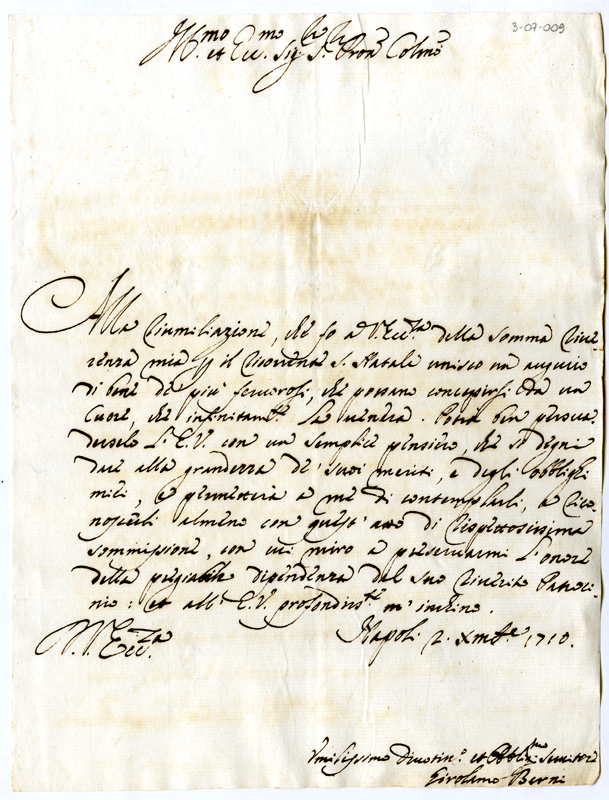 Lettera di Girolamo Berni ad Annibale Albani (1710 dicembre 2)