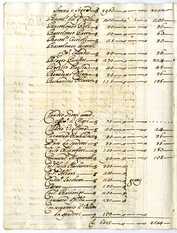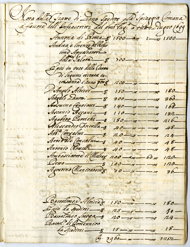 Nota di tutte le tratte de Grani, e Minuti concedute e vendute dalla Santità di Nostro Signore doppo la Raccolta dell'Anno 1698, a tutto Giugno 1699