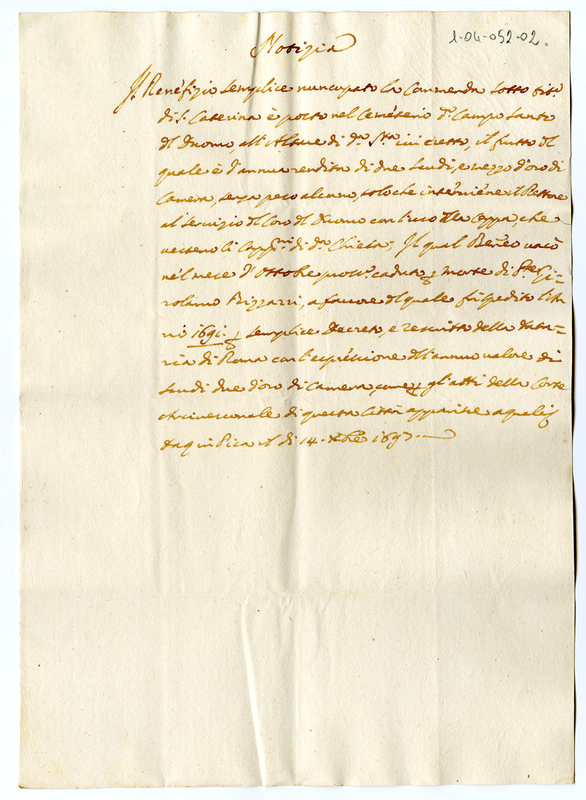 Comunicazione della morte del padre Girolamo Bizzarri e vacanza della chiesa di S. Caterina a Pisa.