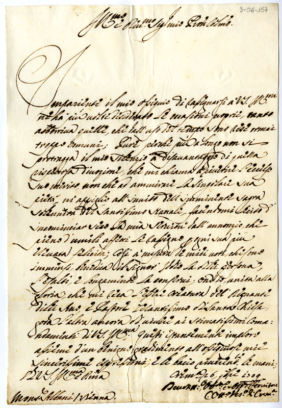Lettera del vescovo di Cremona ad Annibale Albani (1709 dicembre 26)