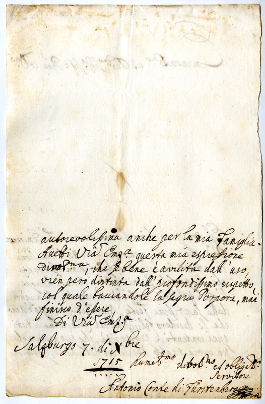 Lettera di Antonio conte di Furstemberg al cardinale Annibale Albani (1715 dicembre 7)