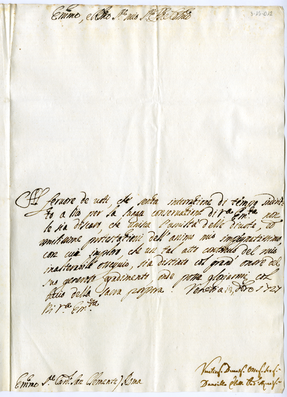 Lettera di Daniello eletto di Aquileia al cardinale Annibale Albani (1727 dicembre 13)