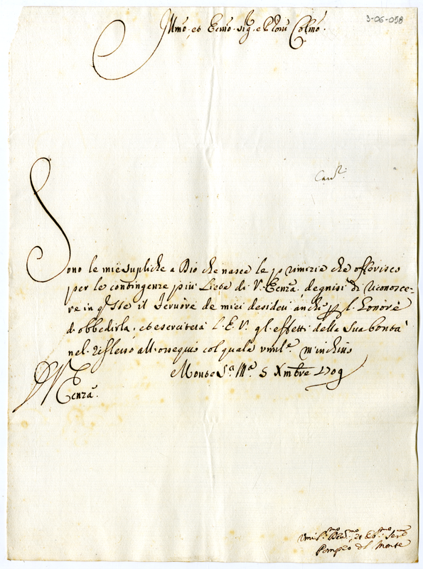 Lettera di Pompeo del Monte ad Annibale Albani (1709 dicembre 5)