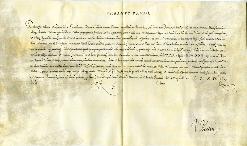 Papa Urbano VIII incarica il castellano di Senigallia di obbedire al vescovo di Fossombrone.