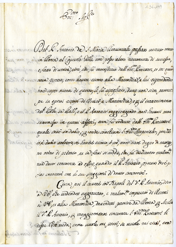 Lettera di frate Salvatore da San Giuseppe priore scalzo agostiniano ad un cardinale (1700-1721)