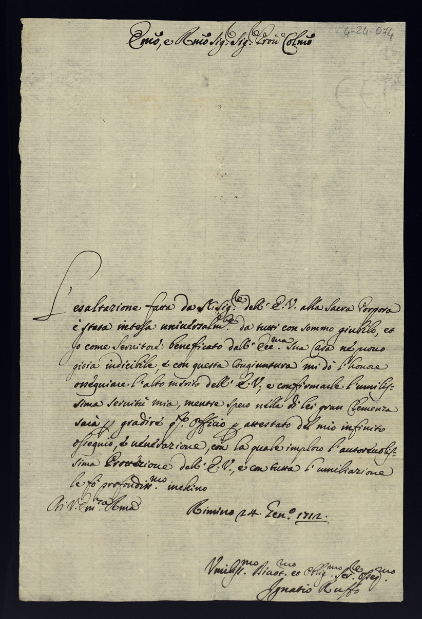 Lettere di congratulazioni per la promozione di sua eccellenza al cardinalato