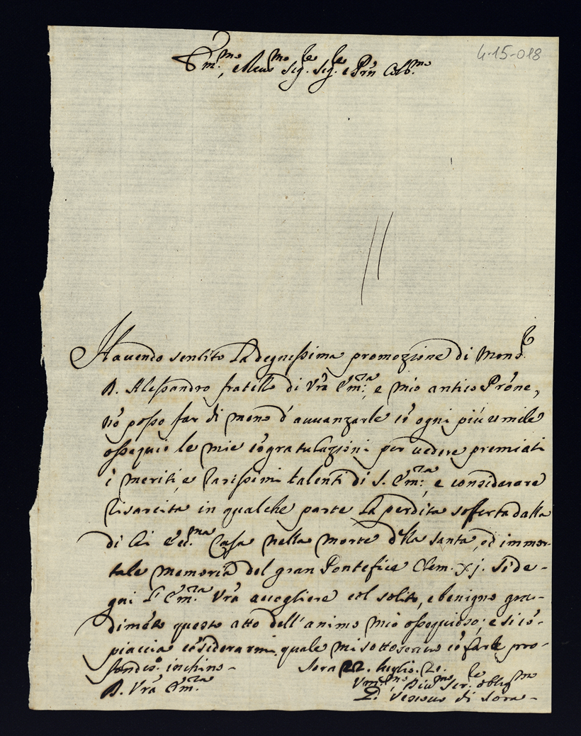 4. Lettere di congratulazione per l'esaltazione alla Porpora dell'eminentissimo cardinale Alessandro Albani