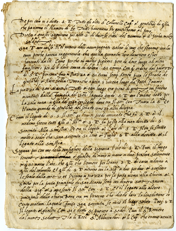 La cerimonia del signor duca illustrissimo Guid'Ubaldo Feltrio Della Rovere d'Urbino nella presa del Bastone nella città di Venezia