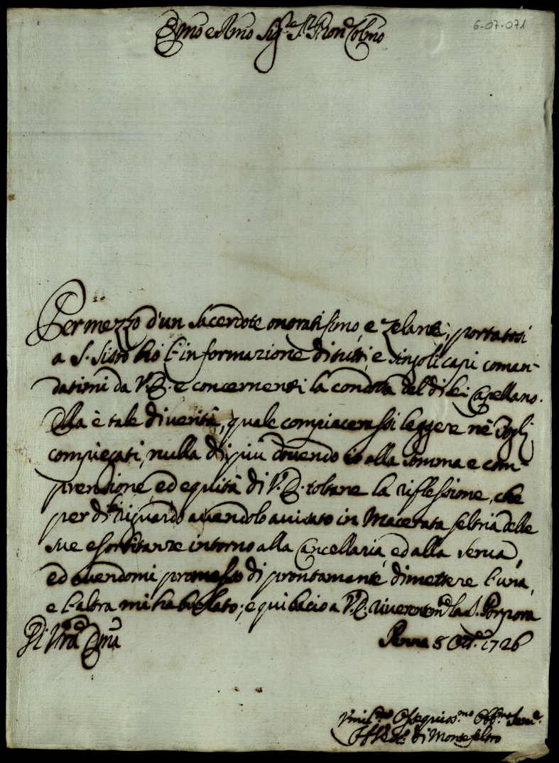 3. Lettere 1726. Tomo III. Comuni e uditore Gasparri