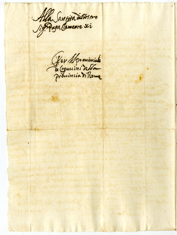 Lettera del provinciale dei cappuccini della provincia di Roma a papa Clemente XI (1700-1721)