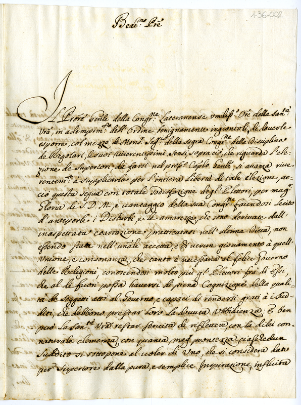Lettera del Priore Generale della Congregazione Lateranense a Papa Clemente XI (1700-1721)