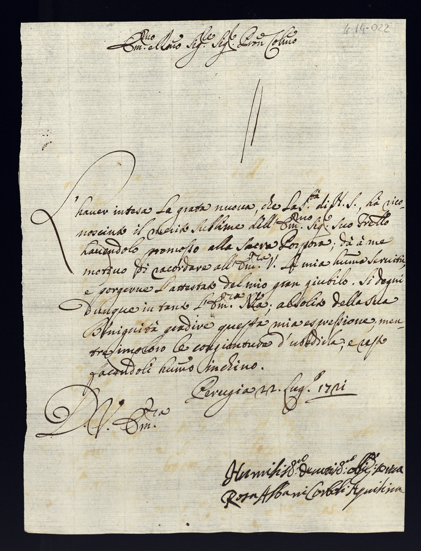 4. Lettere di congratulazione per l'esaltazione alla Porpora dell'eminentissimo cardinale Alessandro Albani