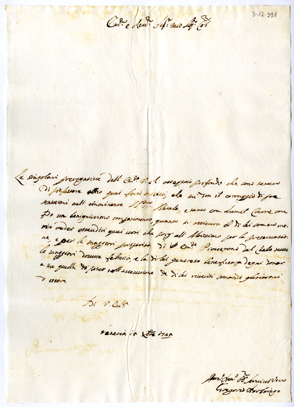Lettera di Gregorio Barbarigo al cardinale Annibale Albani (1725 dicembre 15)