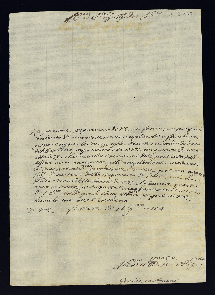 Lettere di negozio e di complimento all'Illustrissima Eccellenza dell'anno 1704. Semestre primo