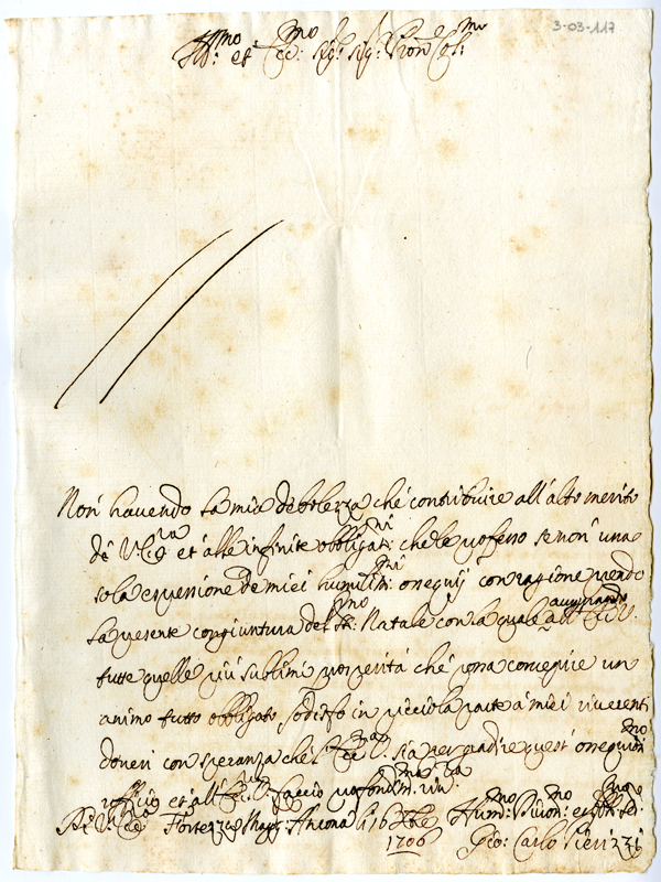 Lettera di Giovanni Carlo Pierizzi ad Annibale Albani (1706 dicembre 16)