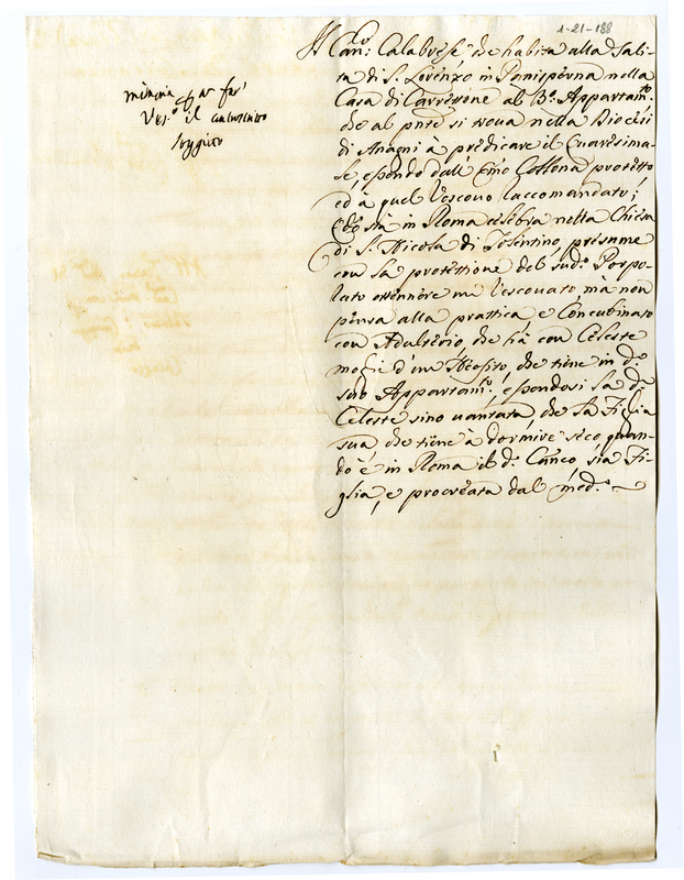 Memoria per far Vescovo il Canonico Calabrese (1700-1721