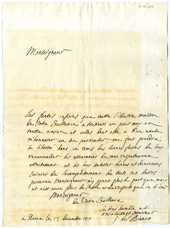 Lettera di del Bianco ad Annibale Albani (1710 dicembre 17)