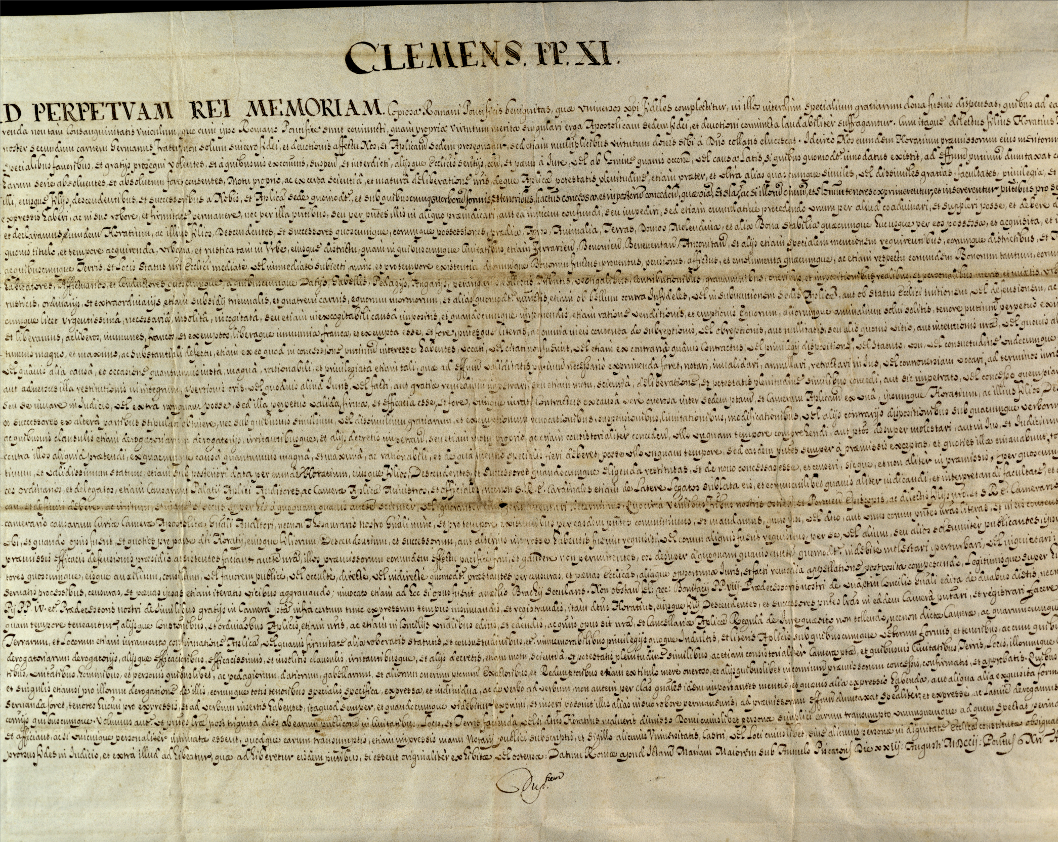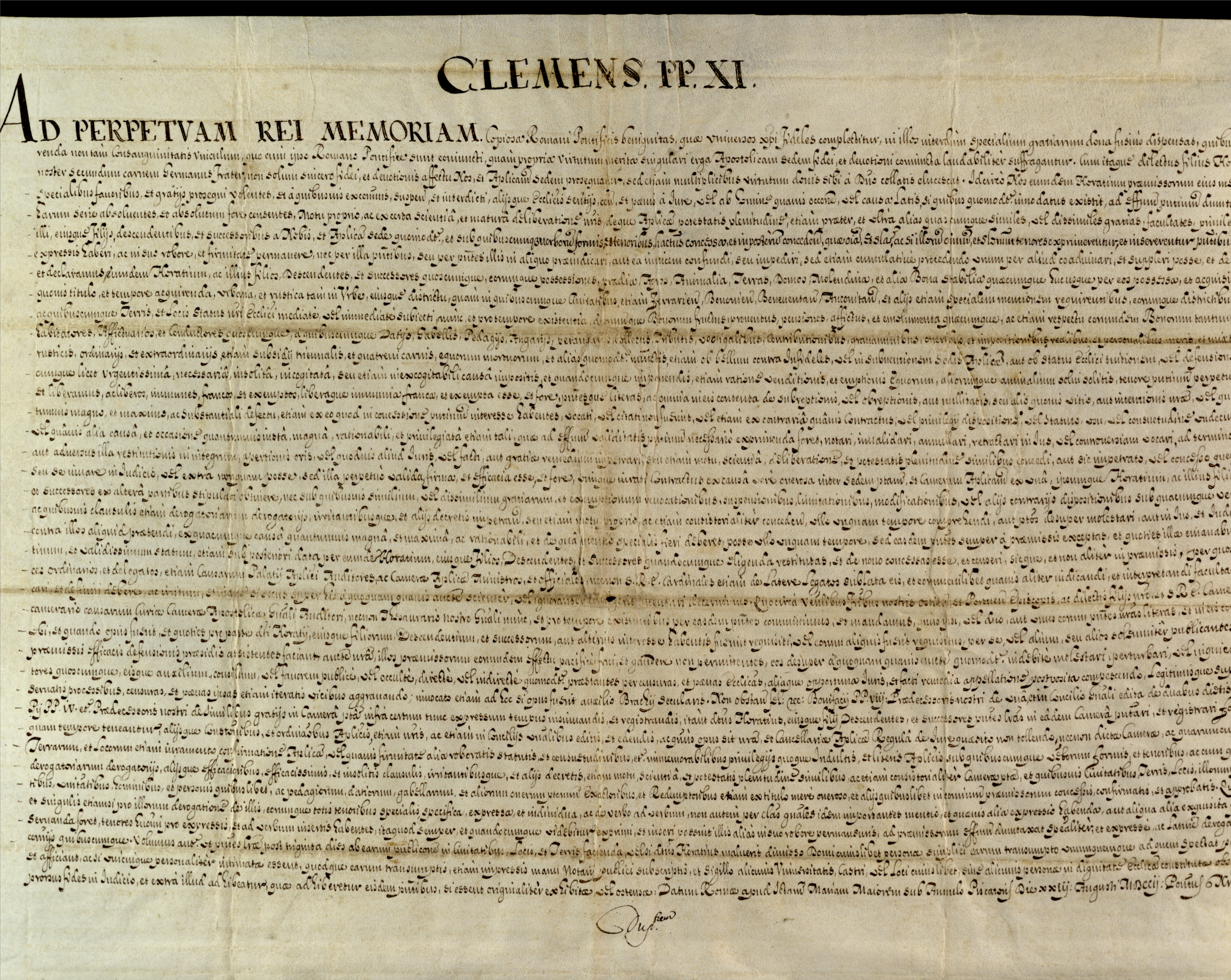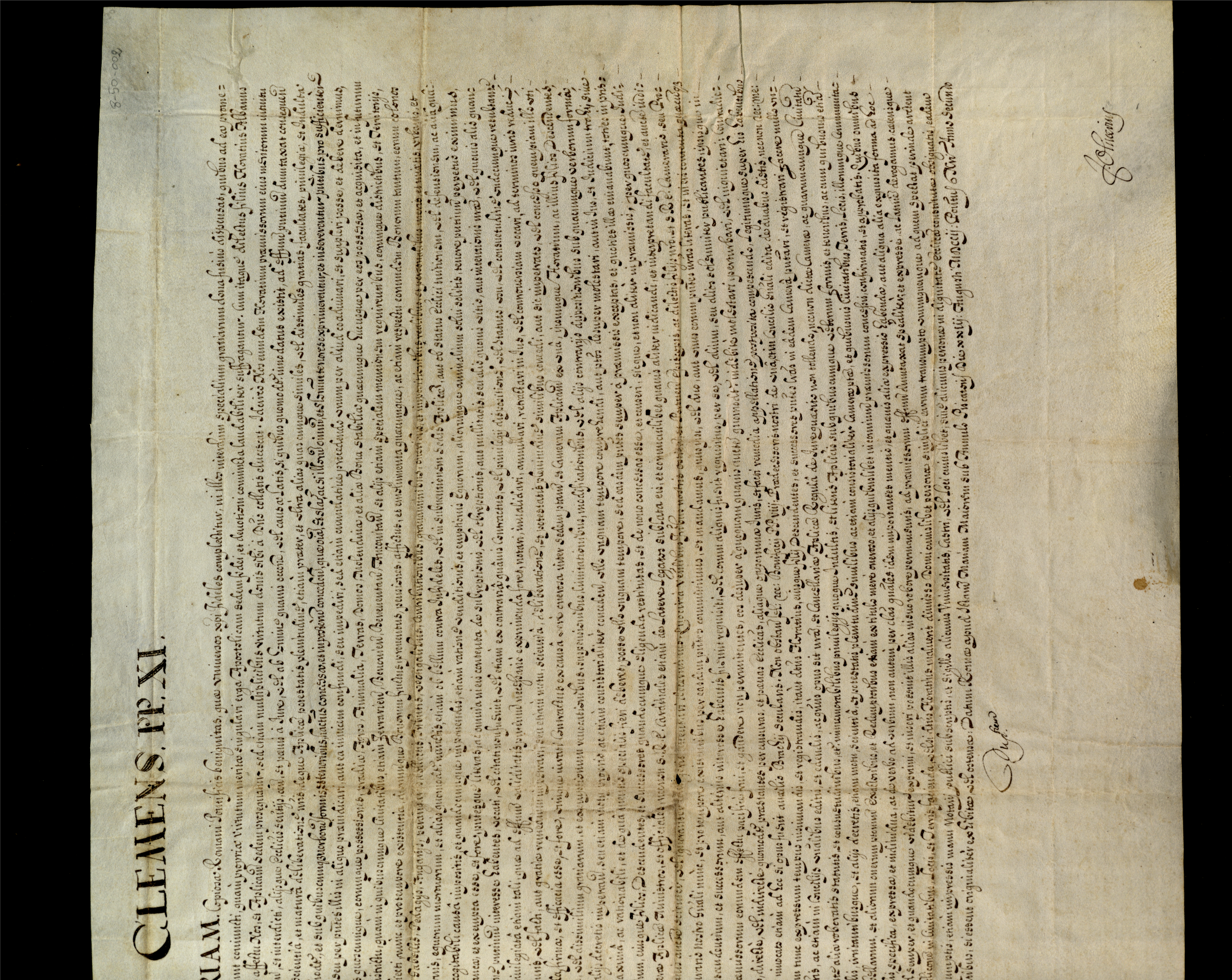 Chirografo di Clemente XI per l'esenzione dei dazi e delle gabelle a favore del fratello Orazio Albani