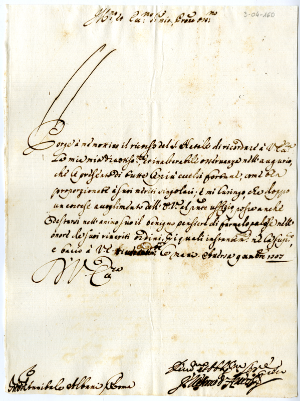 Lettera del vescovo di Aversa ad Annibale Albani (1707 dicembre 9)