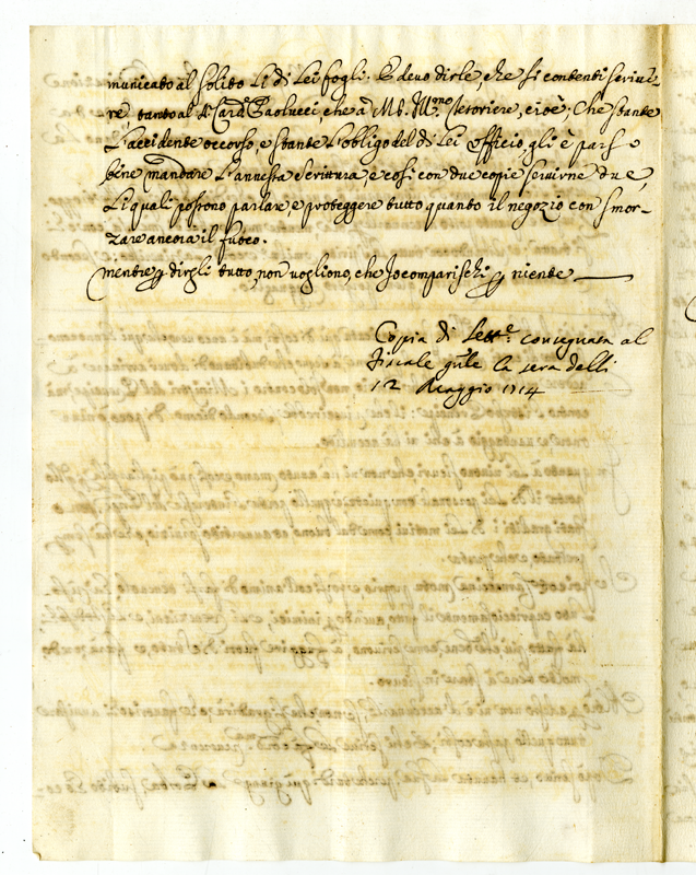Copia di cinque lettere di Egidio Maria Bordoni di argomento vario (1714 maggio 12)