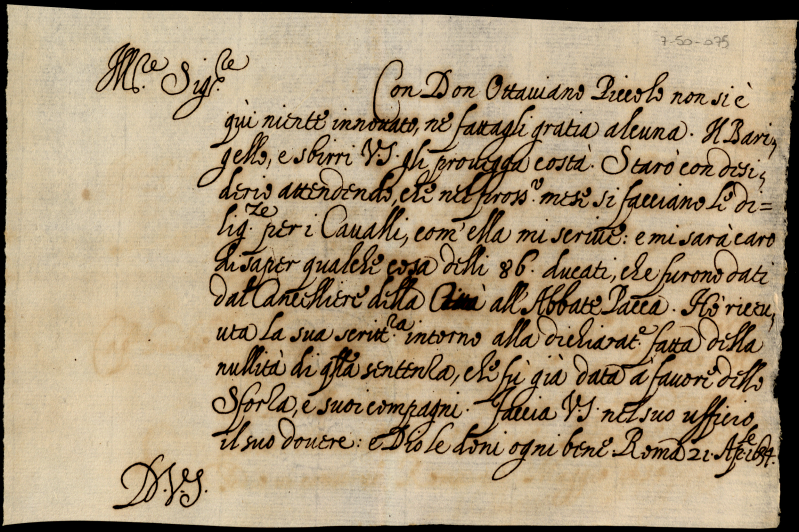 Minute di lettere latine, italiane e francesi scritte a diversi da Monsignor Annibale Albani di complimento, negozio
