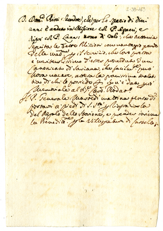 Memoria di don Domenico Ricci sul canonicato di Saviano che facilmente resterà vacante (1700-1721)