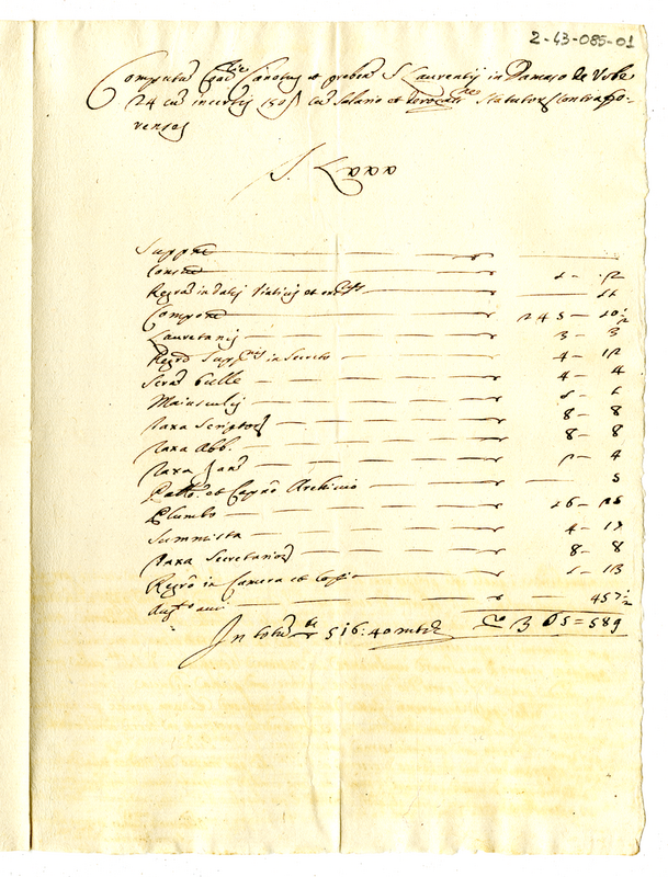 Note delle rendite e prebende della coadiutoria del canonicato di San Lorenzo in Damaso in Roma (1700-1721)