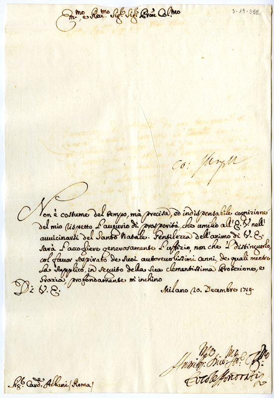 Lettera di Ercole Sfondrati al cardinale Annibale Albani (1719 dicembre 20)