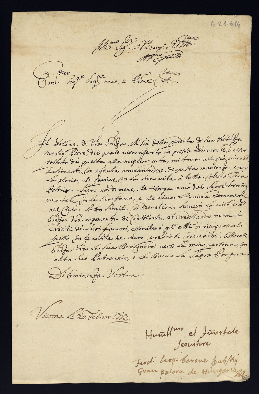 4. Lettere di condoglianza per la morte dell'eccellentissimo signor principe don Orazio Albani