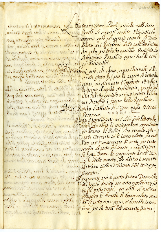 Rendite del Cardinale Priuli nella Repubblica Veneta (1700-1721)