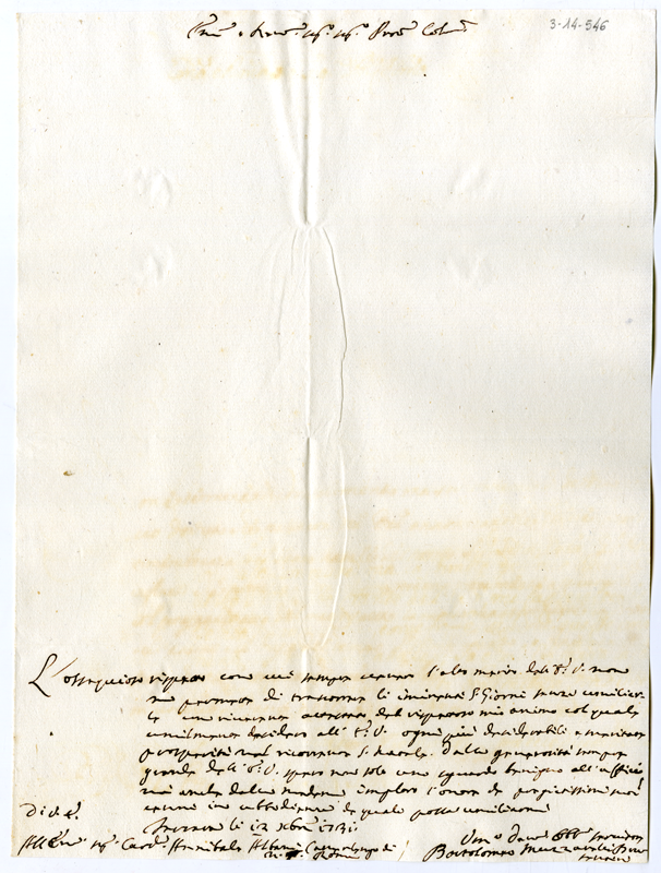Lettera di Bartolomeo Muzzarelli al cardinale Annibale Albani (1731 dicembre 12)
