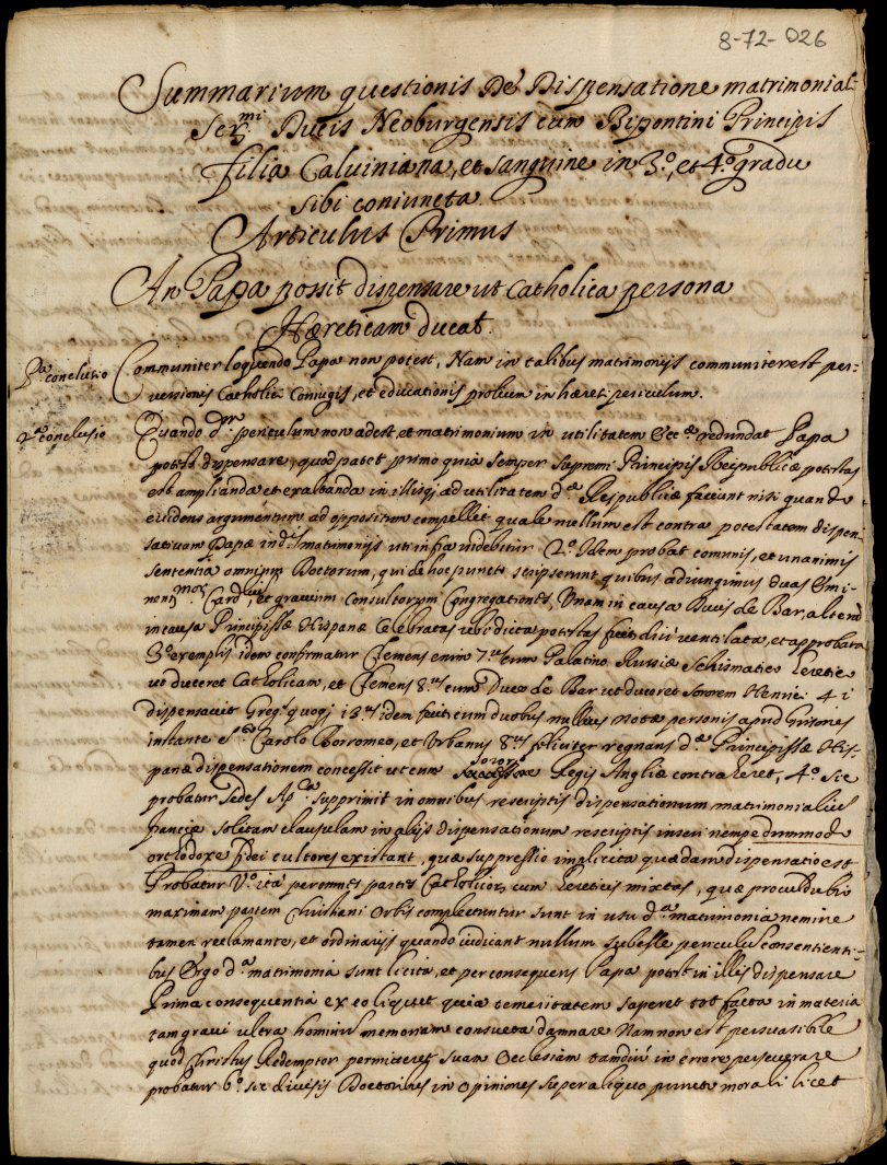 Allegazioni varie giuridiche sopra dispense matrimoniali
