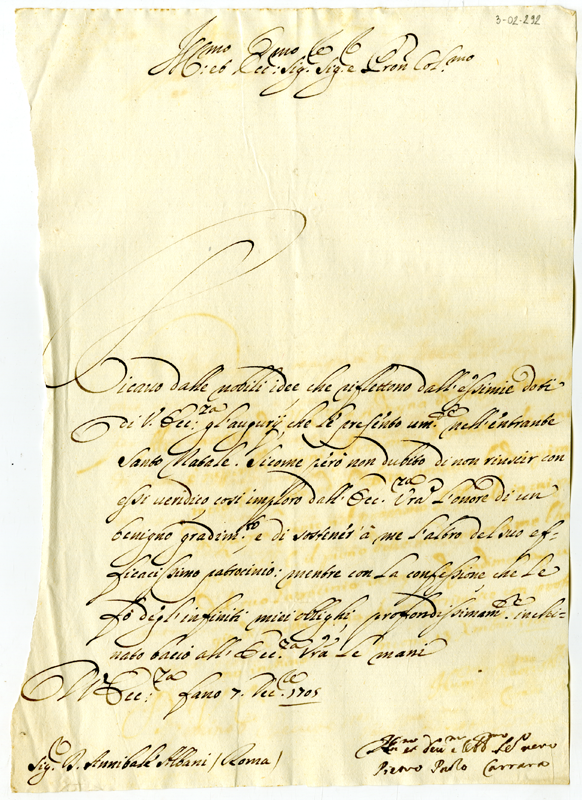 Lettera di Pietro Paolo Carrara ad Annibale Albani (1705 dicembre 7)