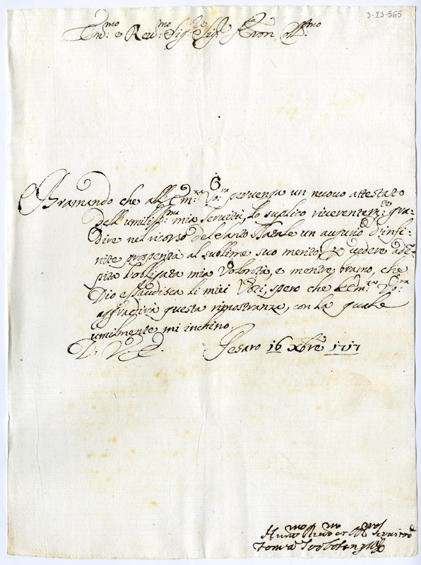 Lettera di Tommaso Sorbolonghi al cardinale Annibale Albani (1717 dicembre 16)